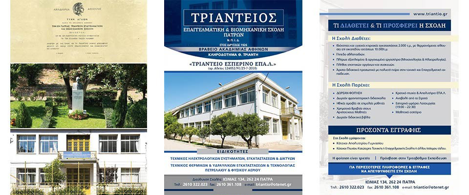 ΤΡΙΑΝΤΕΙΟΣ ΕΠΑΓΓΕΛΜΑΤΙΚΗ & ΒΙΟΜΗΧΑΝΙΚΗ ΣΧΟΛΗ ΠΑΤΡΩΝ ΚΛΗΡΟΔΟΤΗΜΑ Θ. ΤΡΙΑΝΤΗ Επικοινωνία Νέα – Ανακοινώσεις – Προσκλήσεις ΤΟΠΟΓΡΑΦΙΚΟ 2019 ΕΥΕΛΠΙΔΩΝ 7-9 07/03/2025 -ΤΡΙΑΝΤΕΙΟΣ ΠΡΟΣΚΛΗΣΗ ΥΠΟΒΟΛΗΣ ΠΡΟΣΦΟΡΩΝ ΓΙΑ ΕΥΕΛΠΙΔΩΝ 7-9 Ειδικότητες Πληροφορίες Επικοινωνήστε μαζί μας για πληροφορίες και ερωτήσεις σχετικά με τις υπηρεσίες μας. Ας μιλήσουμε